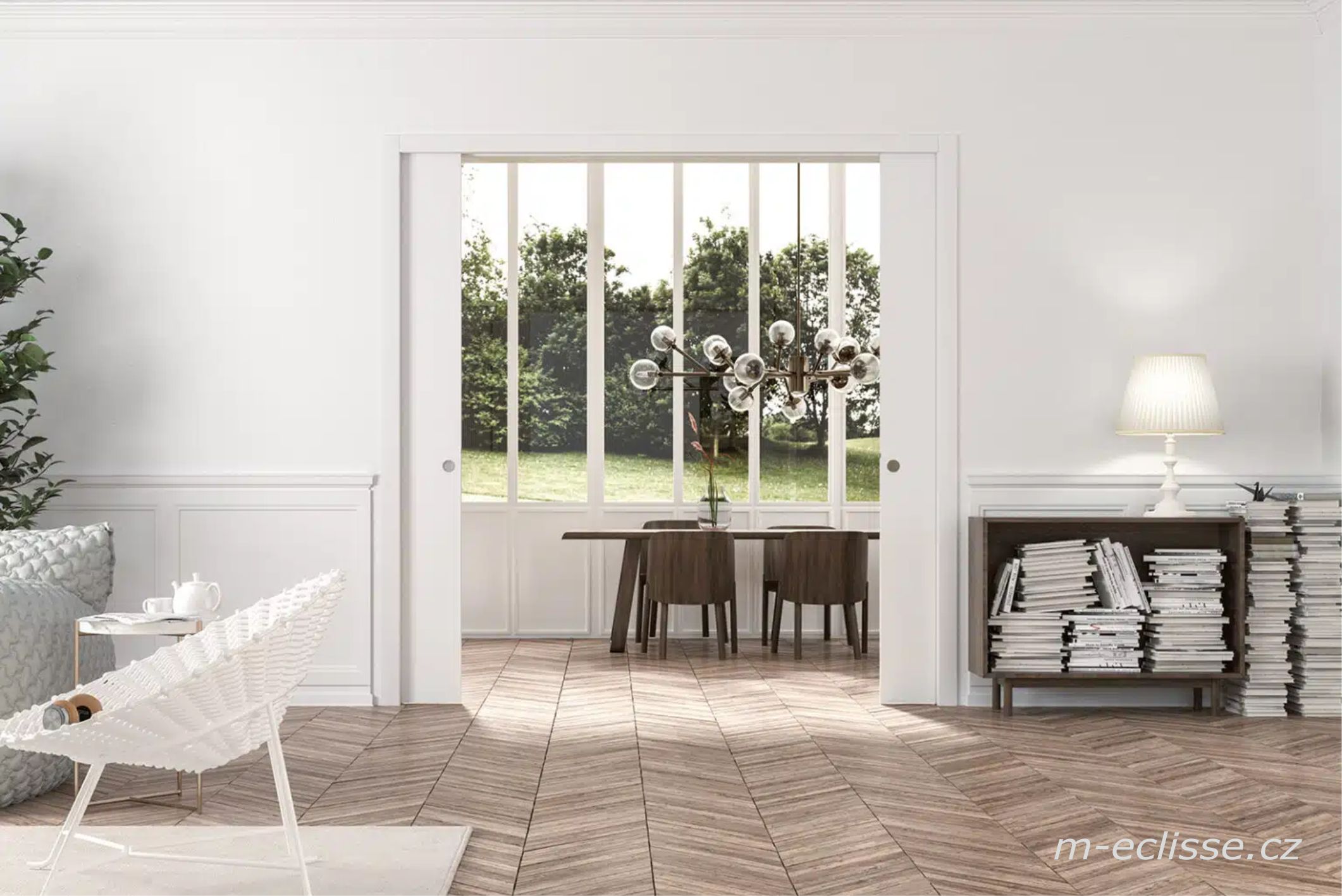 Stavební pouzdro ECLISSE dvoukřídlé je typ pouzdro pro posuvné dveře dvoukřídlé. Tento typ je velice vhodný pro rozdělení dvou průchozích místností s větším nárokem na šířku průchodu. Dodá Vášemu domovu či prostorám elegantnost a funkčnost. Tento typ stavebního pouzdra lze použít pro sádrokartonovu či zděnou příčku. Můžete použít dřevěné i celoskleněné dveře od všech tuzemských výrobců a řemeslníků. Vešeré výrobky firmy ECLISSE jsou nenáročné na montáž a plní svou dokonalou funkci po desetiletí. I tento výrobek si můžete vyzkoušet a porovnat v nějvětším show roomu v české republice- neváhejte a navštivte nás v ANDĚL PARK na Praze 5.